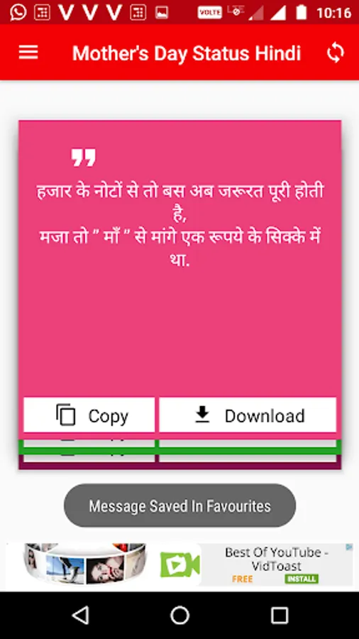 You can bookmark the best Hindi status for maa by swiping the card right.
