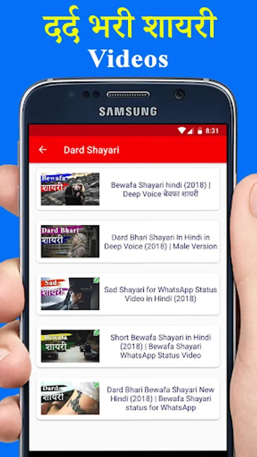 Very easy to use interface just select the categories to watch new Shayari videos from our wide collection of love, Dard, Bewafa and sad Shayaris.