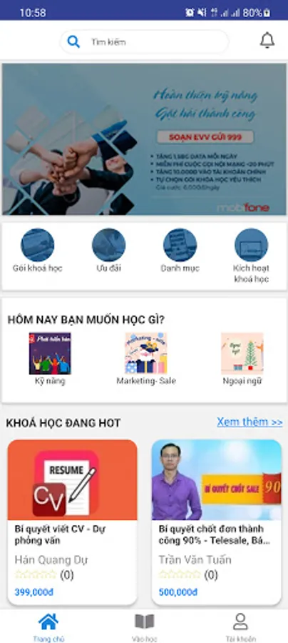 mSkill is an online learning platform provided by MobiFone with more than 1,000 courses in different fields.