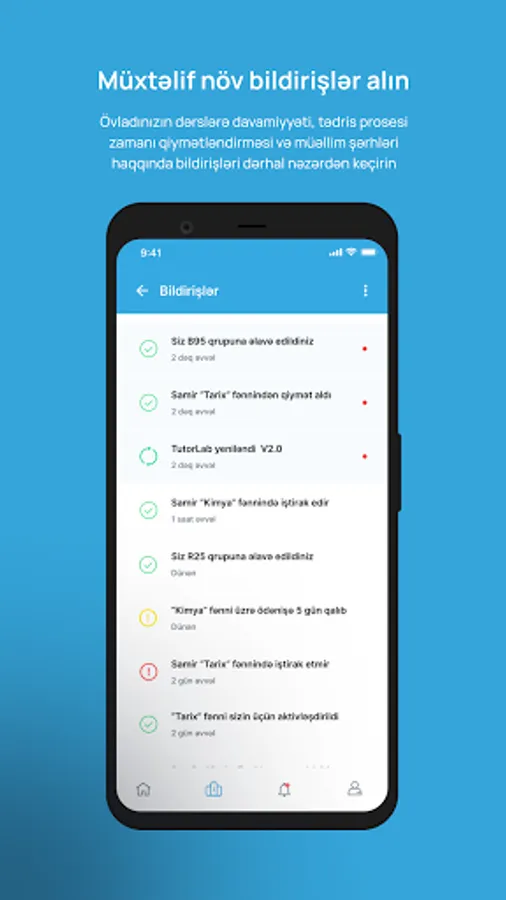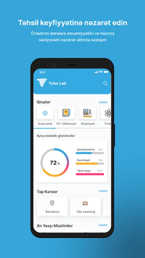 TutorLab-ı sevməyin səbəbləri TutorLab mobil tətbiqi fərdi hazırlıq məşğələlərini və kursları bir çətinlik deyil, sevinc halına gətirir. Müntəzəm olaraq davamiyyətin qeyd olunması, şagird və tələbələrin qiymətləndirməsi o qədər sadədir ki, işinizdən zövq alacaqsınız. TutorLab, məlumatları əvvəllər heç olmadığı kimi analiz etməyə və paylaşmağa kömək edir. Mobil tətbiq vaxtınıza qənaət etməyə imkan verir, dərs prosesini daha asanlaşdırır və sırf tədris prosesinə köklənməyinizə imkan verir.