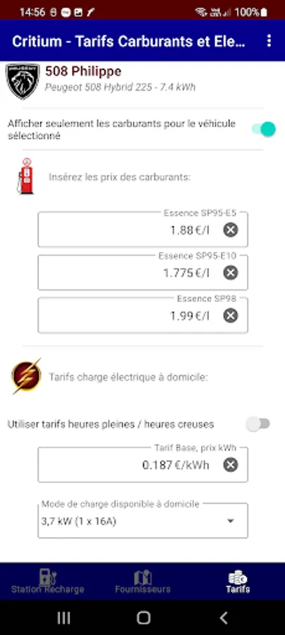 To use Critium, you must fill in your vehicle parameters. You can use pre-registered templates to help you. However, the range in electric mode is that given by the manufacturer, as is the fuel consumption. You will therefore have to adapt these parameters with your own consumptions to best adjust the information given.