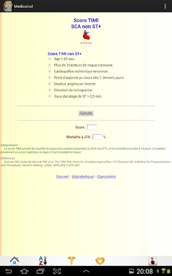- Medicalcul is only available in French. Special information for the Maghreb (Morocco, Algeria, Tunisia): Depending on your network operator, you may have difficulty importing data from servers, or even not be able to obtain it at all. Indeed, a large part of the Internet providers of the Maghreb are blacklisted in France for piracy problems. Try from another connection, it may work, but use of this software in those countries is not guaranteed.