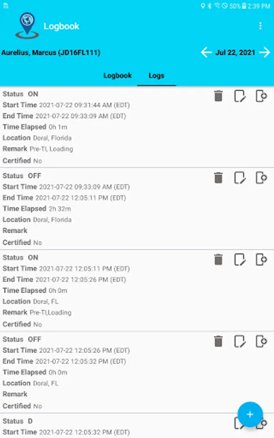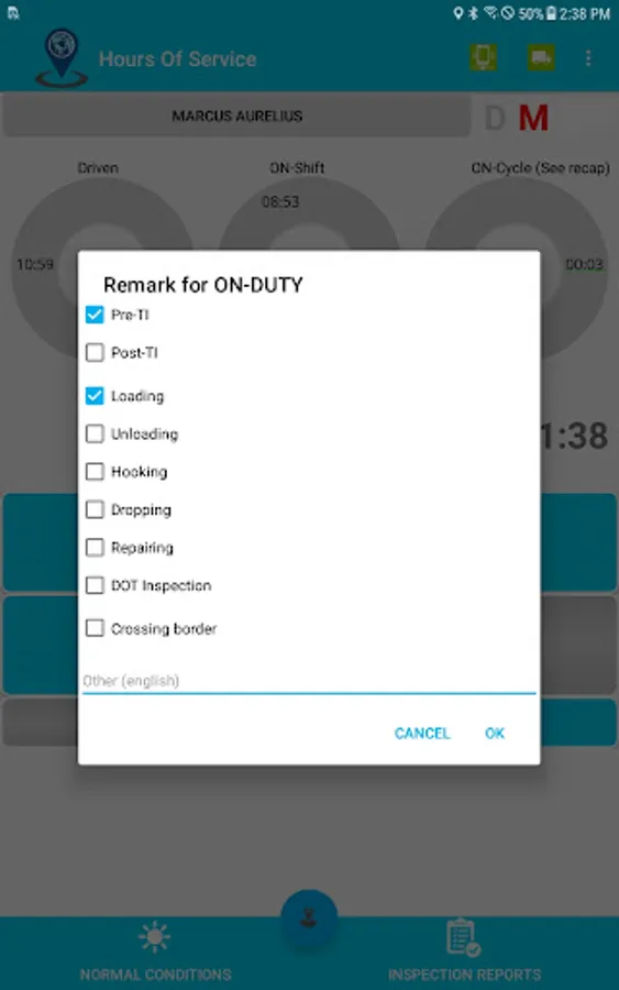 Compliant app to record driver duty status and meet the following regulations:
