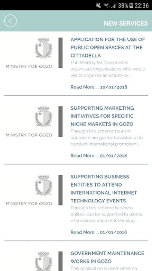 The myGozo mobile app provides information about specific services offered by the Ministry for Gozo. From this mobile app, a citizen can apply for various subsidies, apply to make use of the services offered by Eco Gozo, apply to make use of the services related to the care for the elderly, and to book the sports facilities at the Gozo Sports complex.