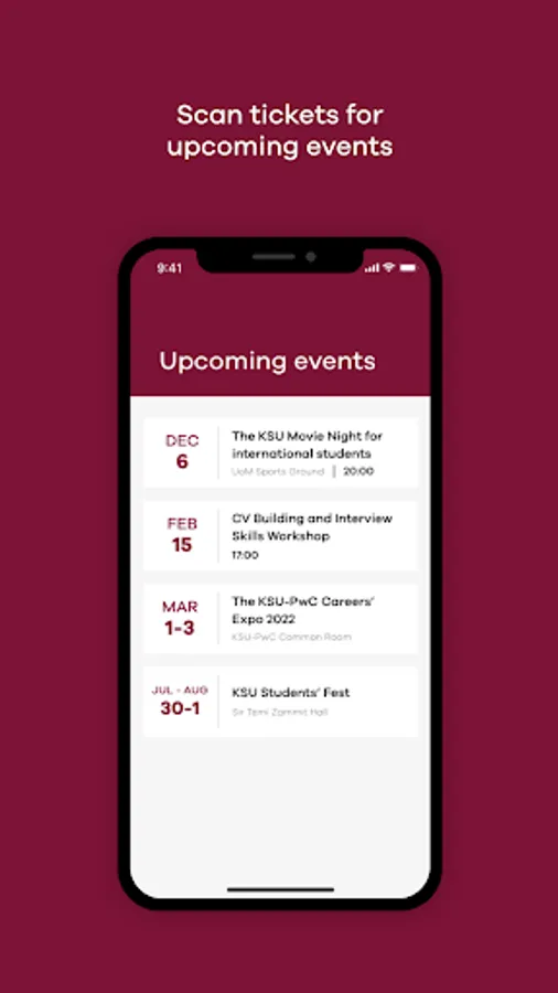 The myKSU Admin app is a simple and smart way of controlling events and the tickets sold. Through this app, one can easily track ticket sales and scan tickets instantly, anytime, anywhere.