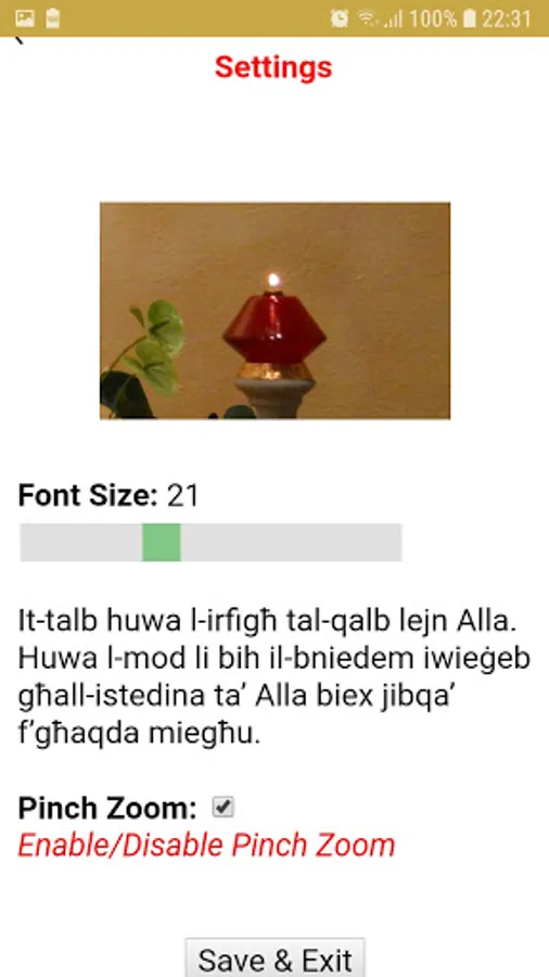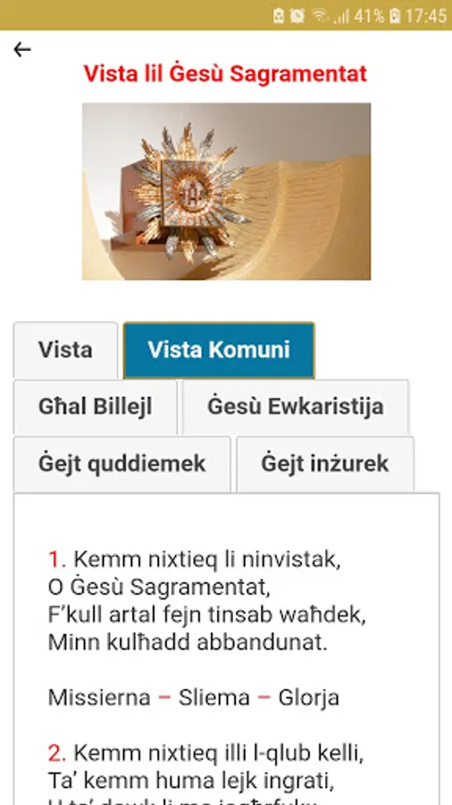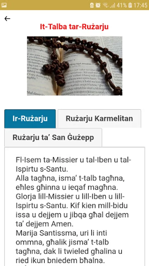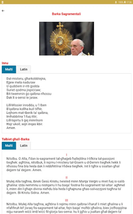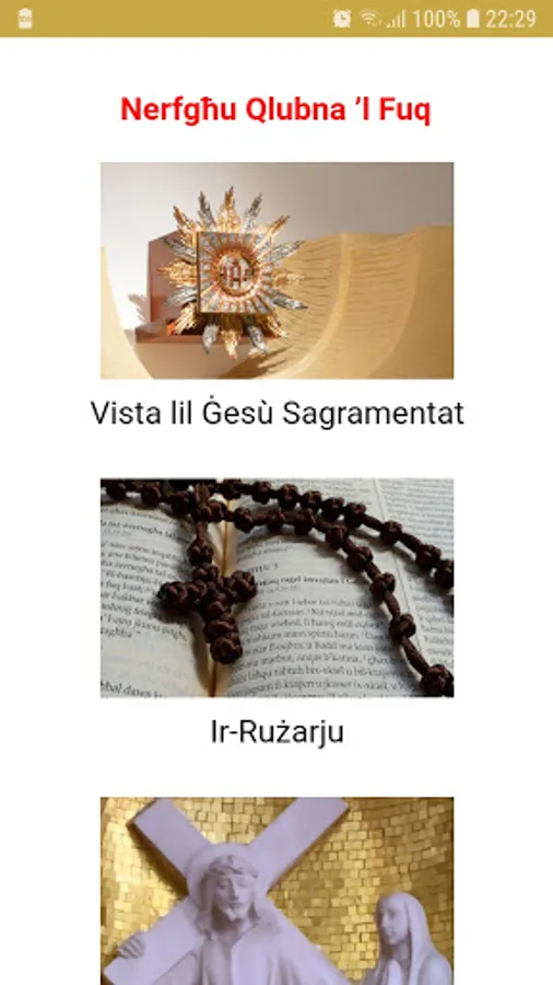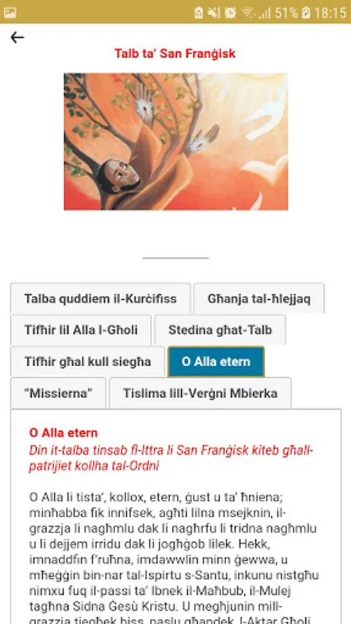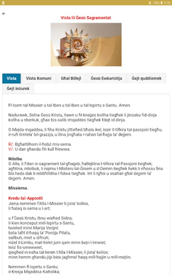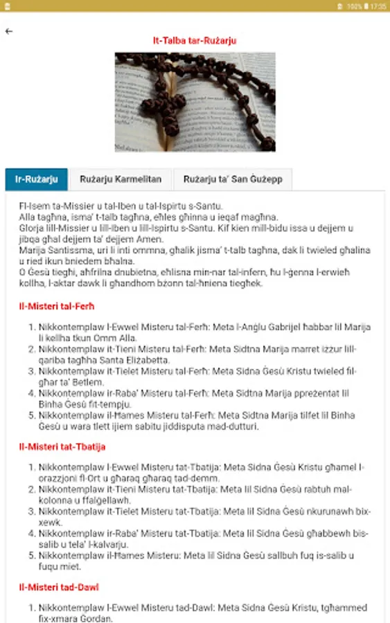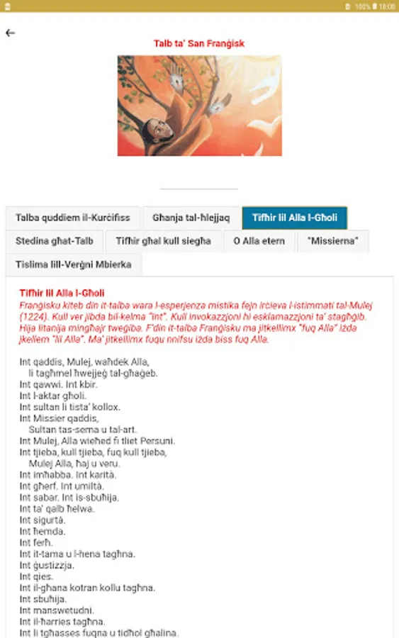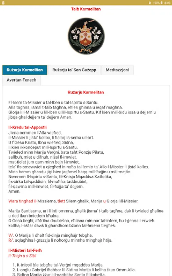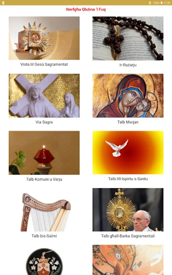L-App tinkludi ġabra ta’ talb bl-għan li tgħin fit-talb personali. Tinkludi Visti lil Ġesù Sagramentat, it-Talba tar-Rużarju, il-Via Sagra, Antifoni lill-Madonna, Talb lill-Ispirtu s-Santu, talb ta’ qaddisin, u talb varju ieħor.