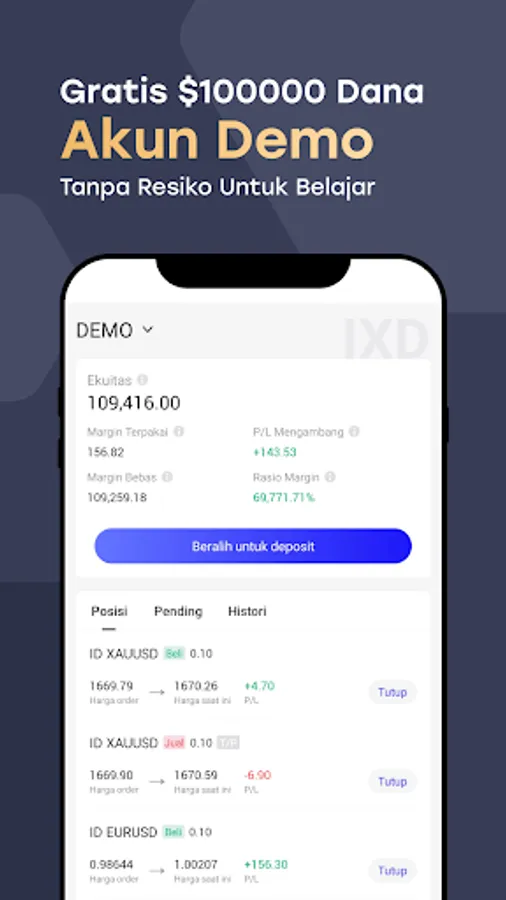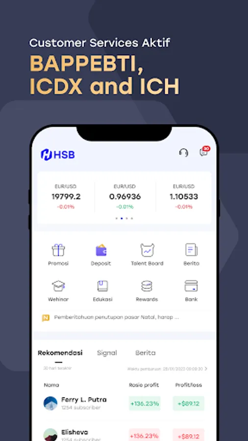• Registered and regulated by BAPPEBTI (Commodity Futures Trading Supervisory Agency), License Number 001/BAPPEBTI/SI/5/2018.