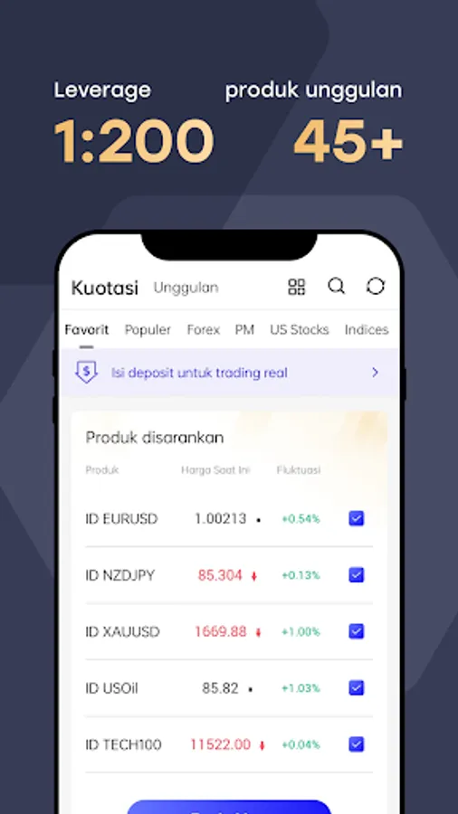 We provide more than 43 trading products including Forex, Oil, Precious Metals, Commodities, US Stocks, etc. to meet your trading needs.