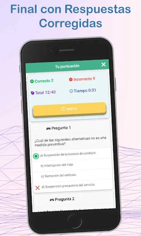 At the end of the simulation you will get your score and you will have the opportunity to check the questions you got wrong, with which you can evaluate your progress.