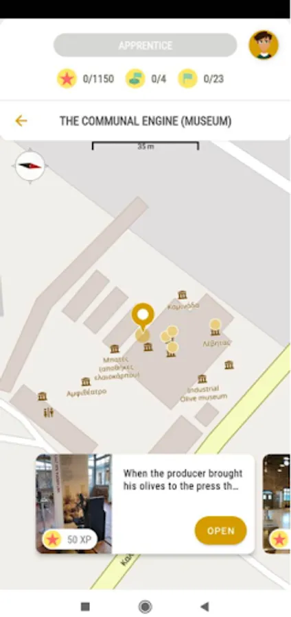 Mouseion Topos - Lesvos is a learning game and tour app that promotes the heritage of industrial olive oil production.