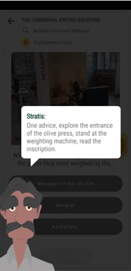 It is a location-based app that can be played in Aghia Paraskevi and the museum of industrial live oil production.