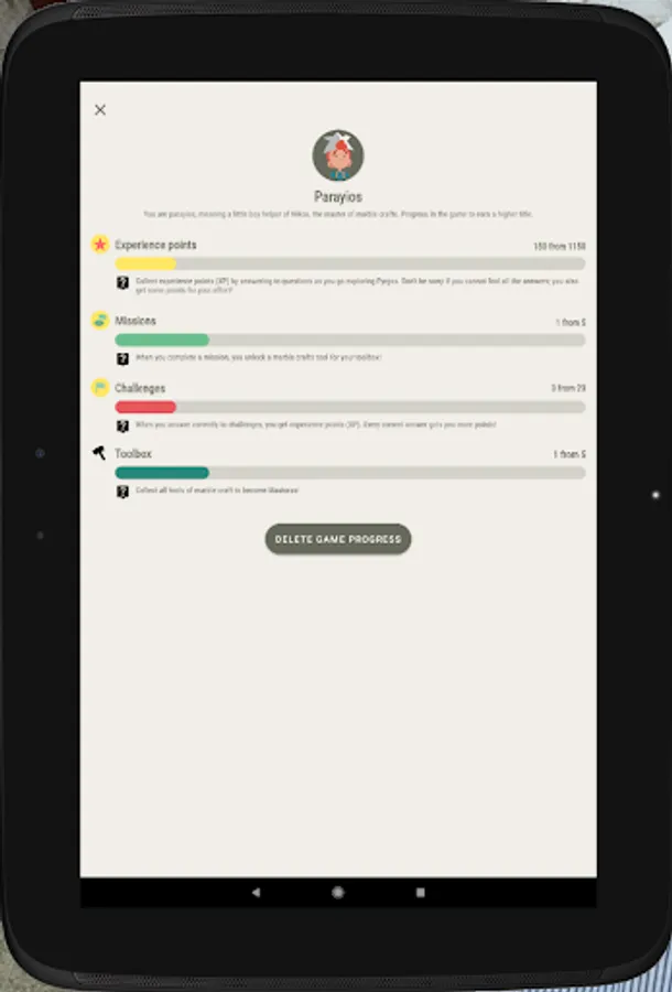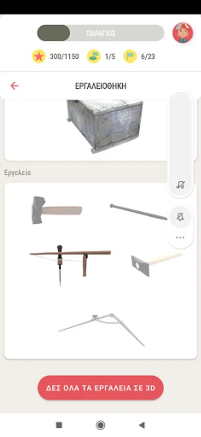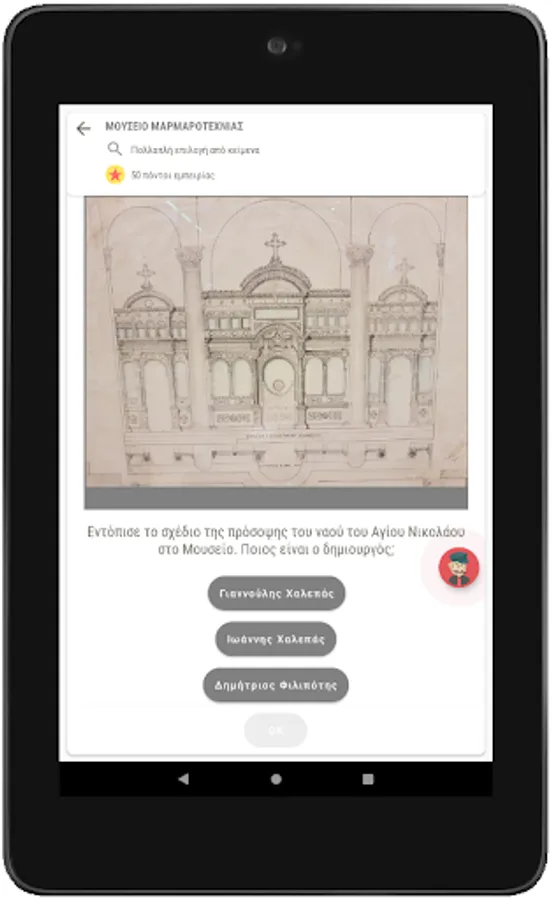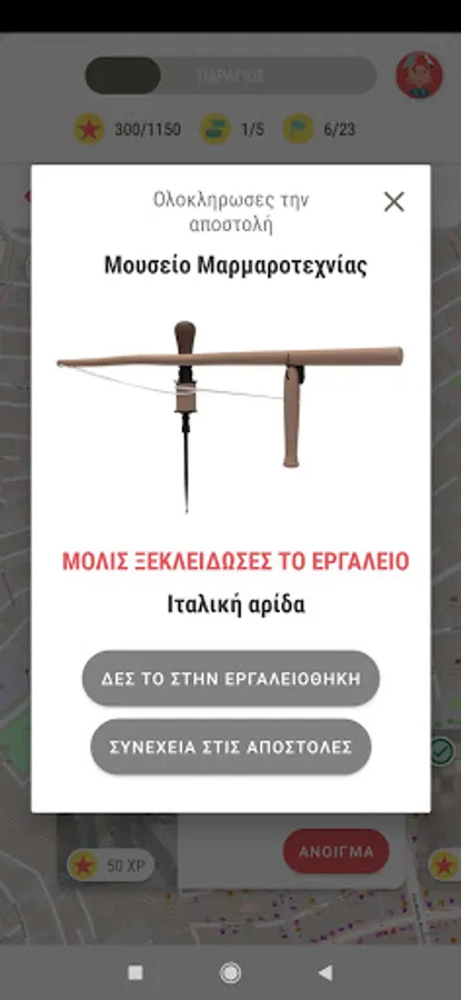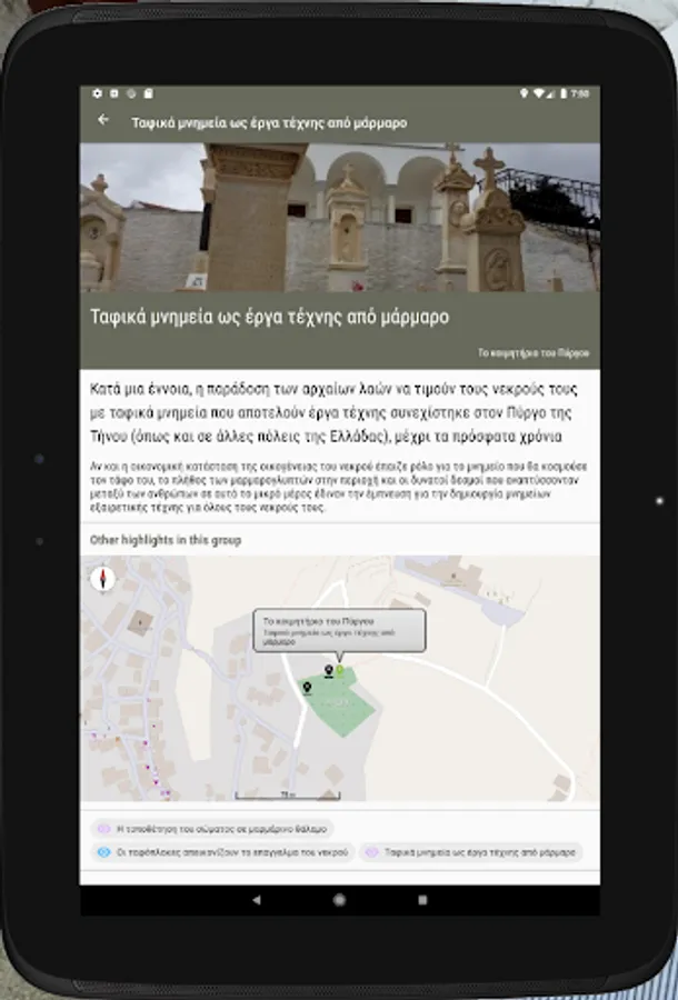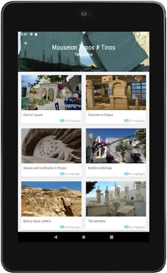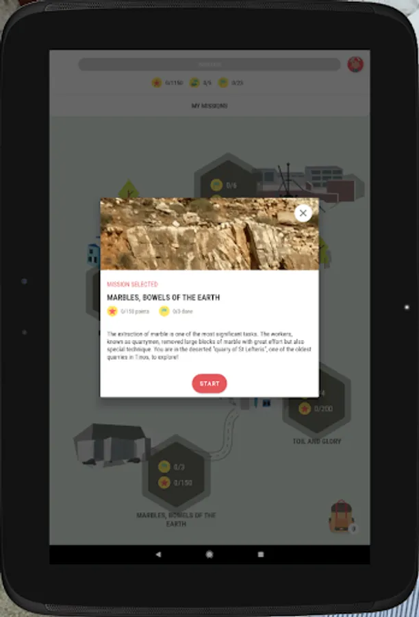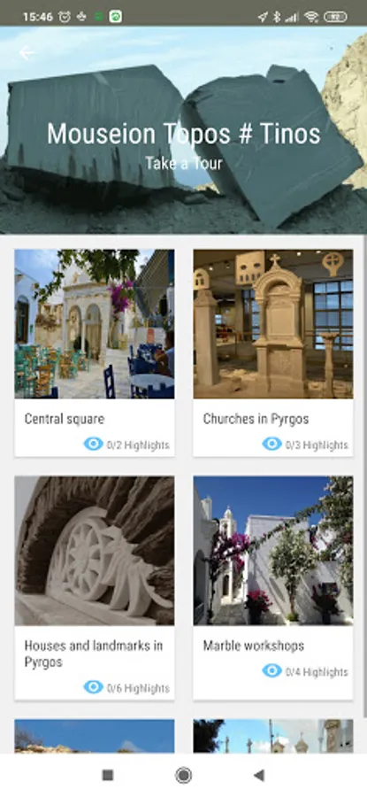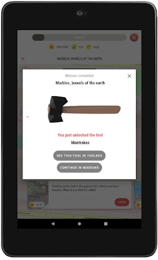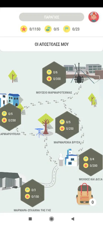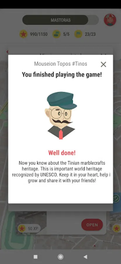 It is a location-based app that can be played at the Museum of Marble Crafts and the settlement of Pyrgos, in Tinos island.