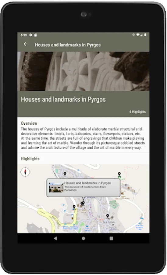 Mouseion Topos - Tinos is a learning game and tour app that promotes the heritage of Tinian marble crafts.