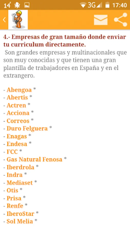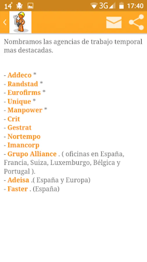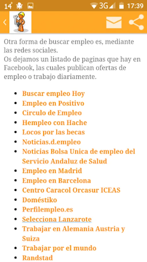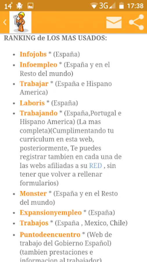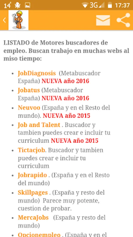 - Occasional alerts with free messages to your mobile, only to national job openings or large companies (Post, Mercadona, Zara, etc ..) scale