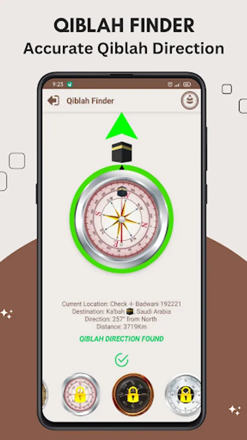 Qiblah Finder:Imaan 360 has Find Qiblah direction from user location, it requires location parameters & compass sensor.