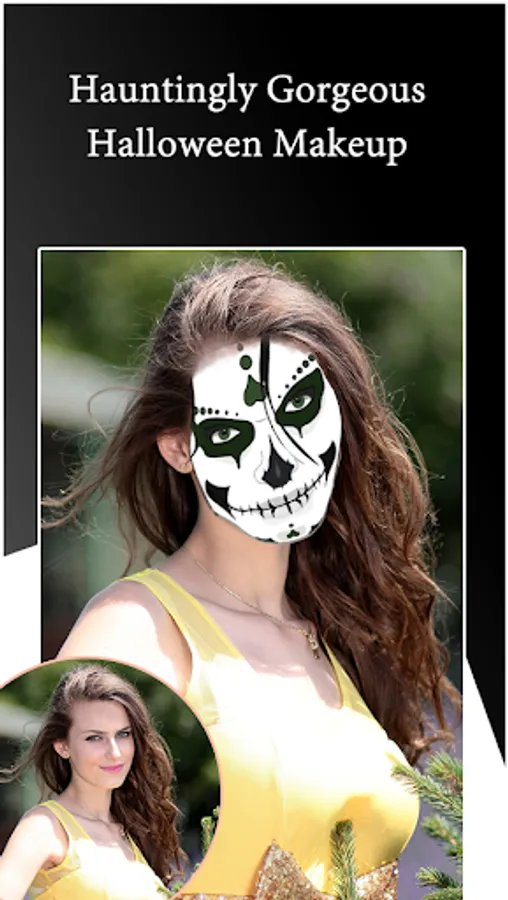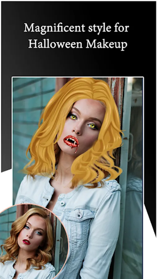 Halloween makeup photo Editor and Halloween costume photo collage maker to give a new idea about Halloween makeup and costume only with a halloween face paint, you can find also Halloween face painting or Halloween face masks with a crazy Halloween makeup kits with special effects makeup to make yourself a Halloween zombie or even a Halloween vampire 2019.