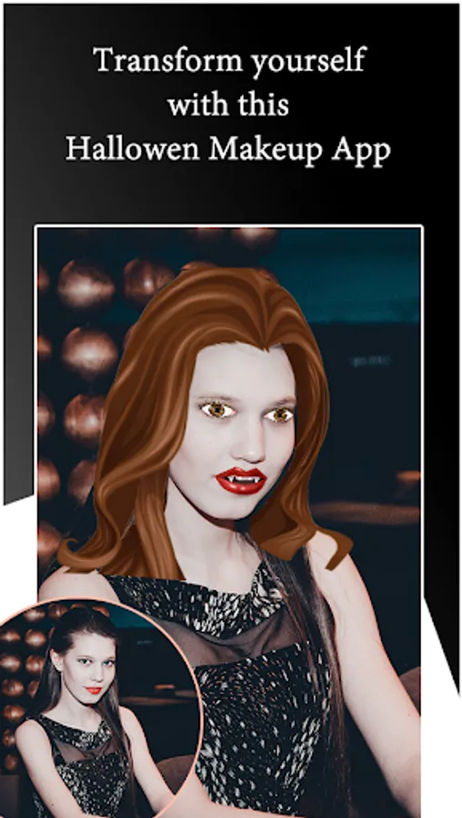 - Halloween Makeup face changer with scary halloween effect and vampire fangs.