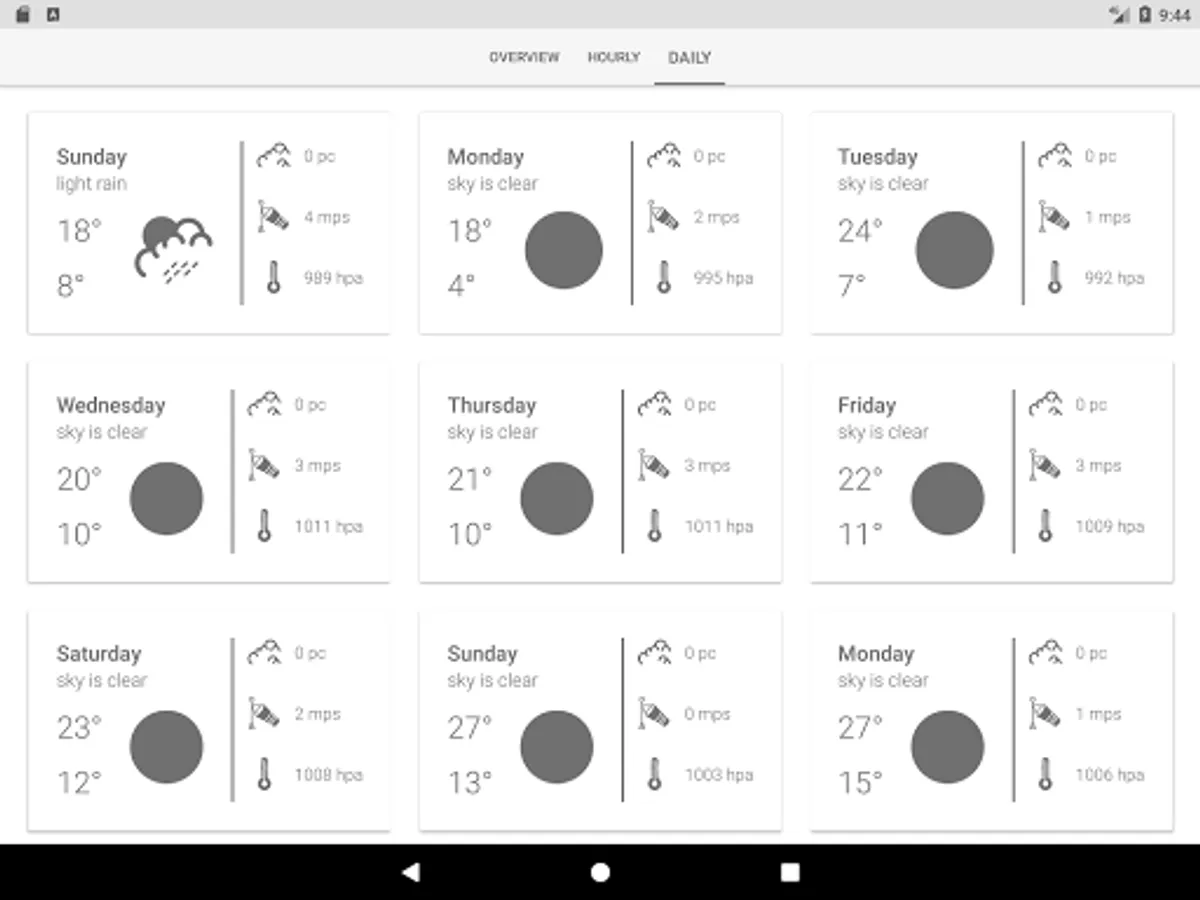 - Current weather condition, hourly weather forecast and 16-day weather forecast.