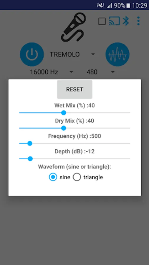 Using wireless connection (Bluetooth, Chromecast, TV) will add more delay to the mic. If wireless sound is mute, increase the frame_per_buffer until the sound is stable. It could be 48000 Hz - 5760, 48000Hz - 7680 depend on your phone. The bigger frame_per_buffer (second parameter), the more delay it is.