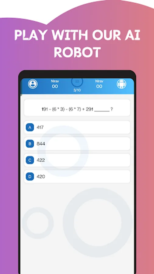 Play with AI Robot : When no user online you can choose to play with AI ( Artificially Intelligent) Robot specially designed for this game.