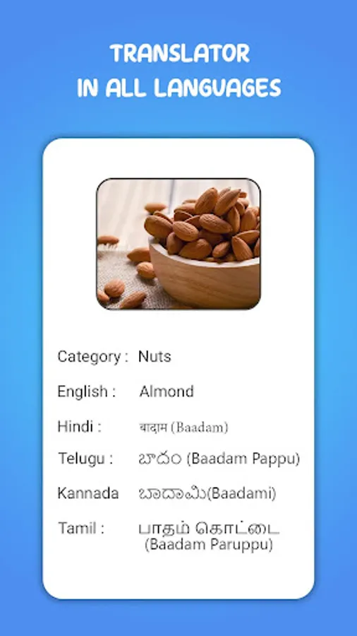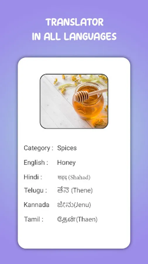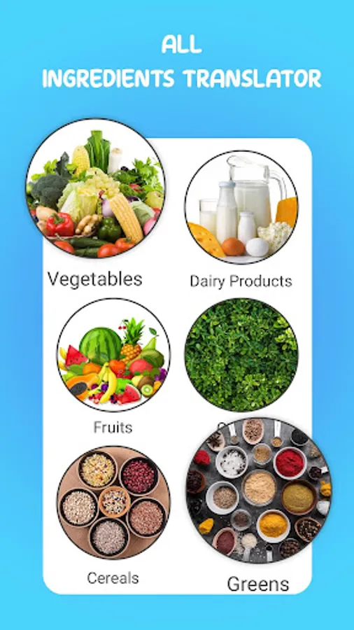 this app provide translation for every food items you can go through it if you want to know its name in different formats