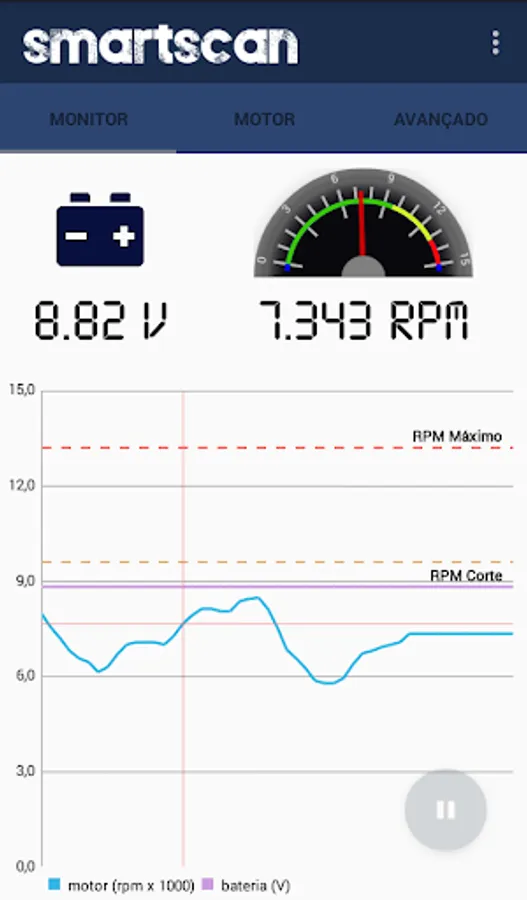 * See the engine speed and battery voltage in real time;