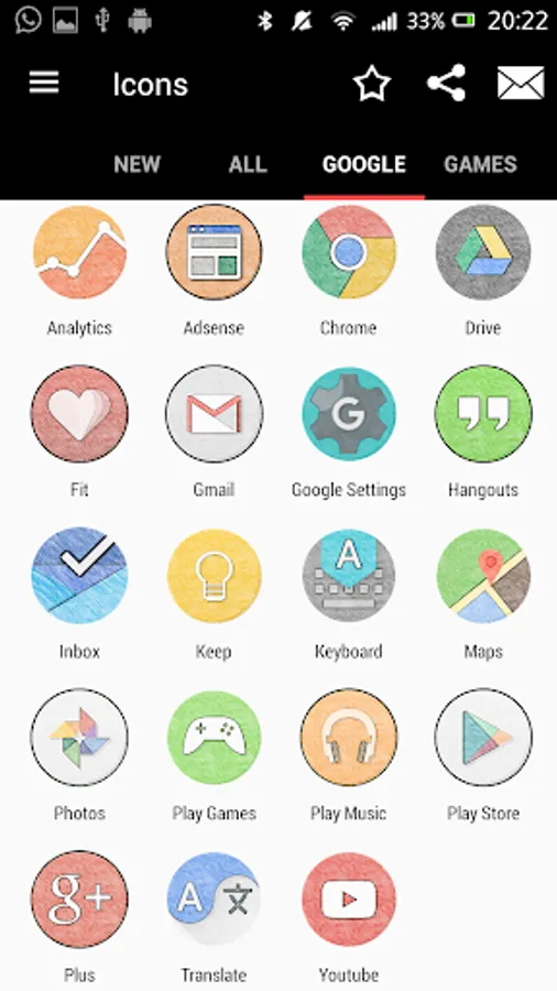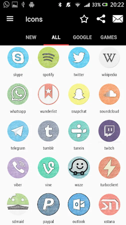 ★ 200 + vector designed icons (Made in XXX-HDPI - 192x192 - THIS VARIES GREATLY ON YOUR DEVICES SCREEN RESOLUTION!)
