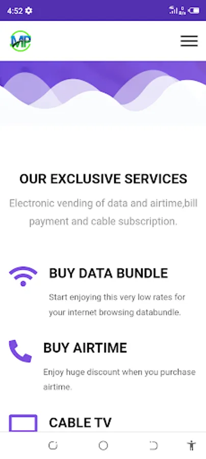 We offer instant recharge of Airtime, Data bundle, Cable TV (DStv, GOtv, & Startimes), Electricity Bill Payment and More.