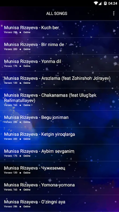 cute qo'shiqchingizning barcha qo'shiqlarini tinglashingiz mumkin: