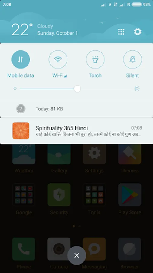 Once user will click on notification Home screen will be shown quote with beautiful text.