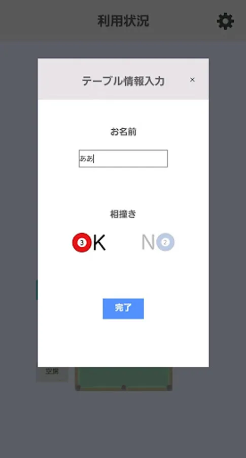 ・お店に入ったら、入るテーブルをタップしてテーブル情報を入力します。