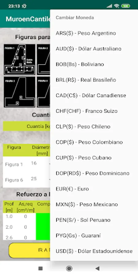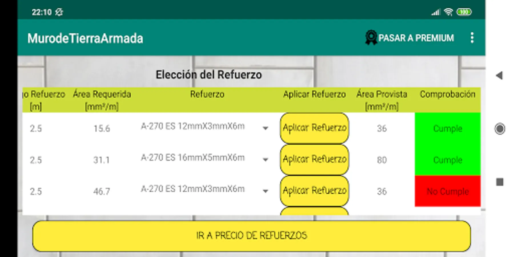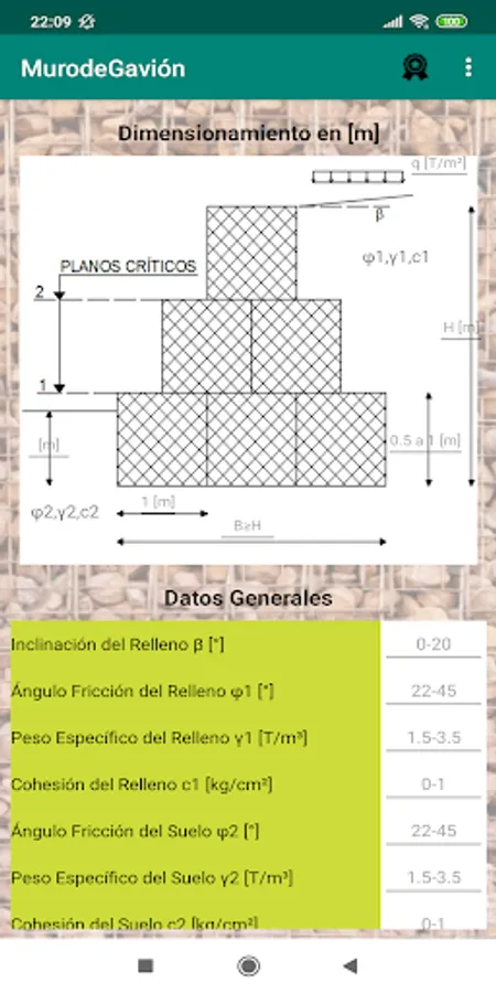 With the Application, you can select between Gravity Walls, Gabion, Armored Earth, reinforced with Geosynthetics, in Cantiléver and Sheet Piles, and you can size, design and verify compliance with Stability Factors, Load Capacity, Shear, Traction, Flexion . You can choose the reinforcements to comply with these designs and their arrangement in the wall.