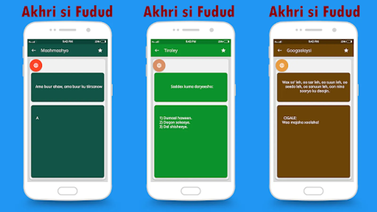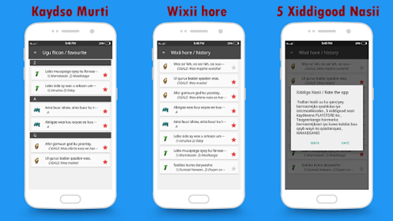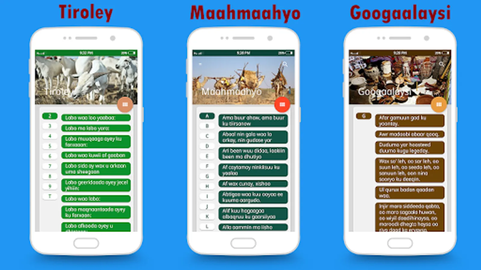 Waa barnaamij xiiso badan, isla markaasna koobaya dhinacyo badan oo ka midaa murti iyo maahmaahyada soomaaliyeed, barnaamijka wuxuu ka kooban yahay qaybo badan oo kala ah maahmaahyada labadeeda nooc. 1-Tuducley, 2-Tiroley, iyo waliba Sheekooyin runtii barnaamijka waqti badan ayaa la galiyey si uu dhamaystirnaan iyo baahsanaanba ay ugu dhamaato. waxaana ku dadaalnaa in mar walba barnaamijka murtiyo iyo maahmaahyo cusub aan kusoo kordhino . FADLAN hadii aad wax cusub nagu soo kor dhinaysid ,ama fiiro gaaraa leedahay noogu soo dir E-MAIL-ka, hoos ku xusan