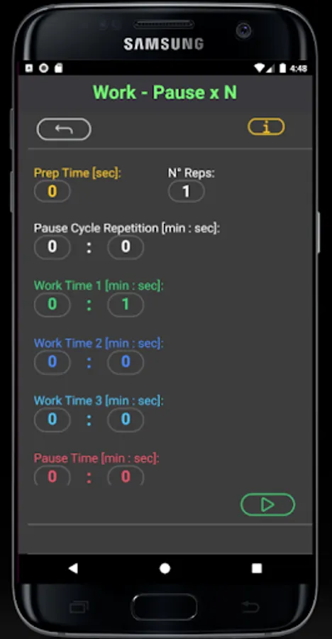Up to 4 different training times that can be repeated for the desired number of times.