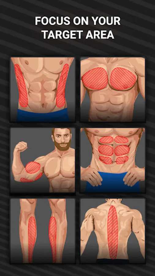 • Select target areas - arms, core, abs, pecs, belly, legs, chest, shoulders or full-body