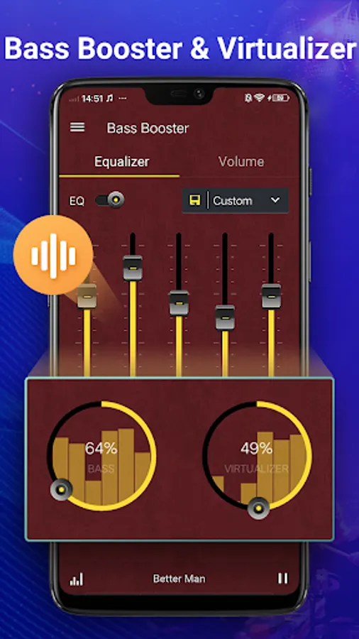Music Equalizer is a powerful Equalizer, Bass Booster, Sound Changer & Volume Amplifier which improve the sound quality of your Android phone or tablet devices. With the most professional Bass Boost and 3D Virtualizer, Equalizer makes your music and video sounds like never before.🎷🎸🎻