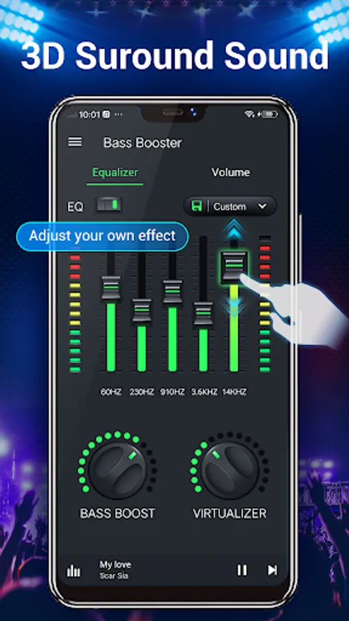 Bass Booster lets you adjust sound effect levels so that you get the best out of your Music or Audio play coming out of your phone. Virtualizer making media files produce quality sound in a Digital Surround Support!
