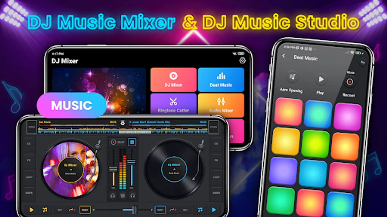 DJ Music Mixer Pro - Dj Remix is the ultimate virtual DJ music studio to mix music and songs and playing DJ with ease. This All-in-one Music DJ mixer, DJ Drum Pad, ringtone cutter, audio editor, audio trimmer, ringtone maker, makes it easy for creative people and music lovers like you! 🎶