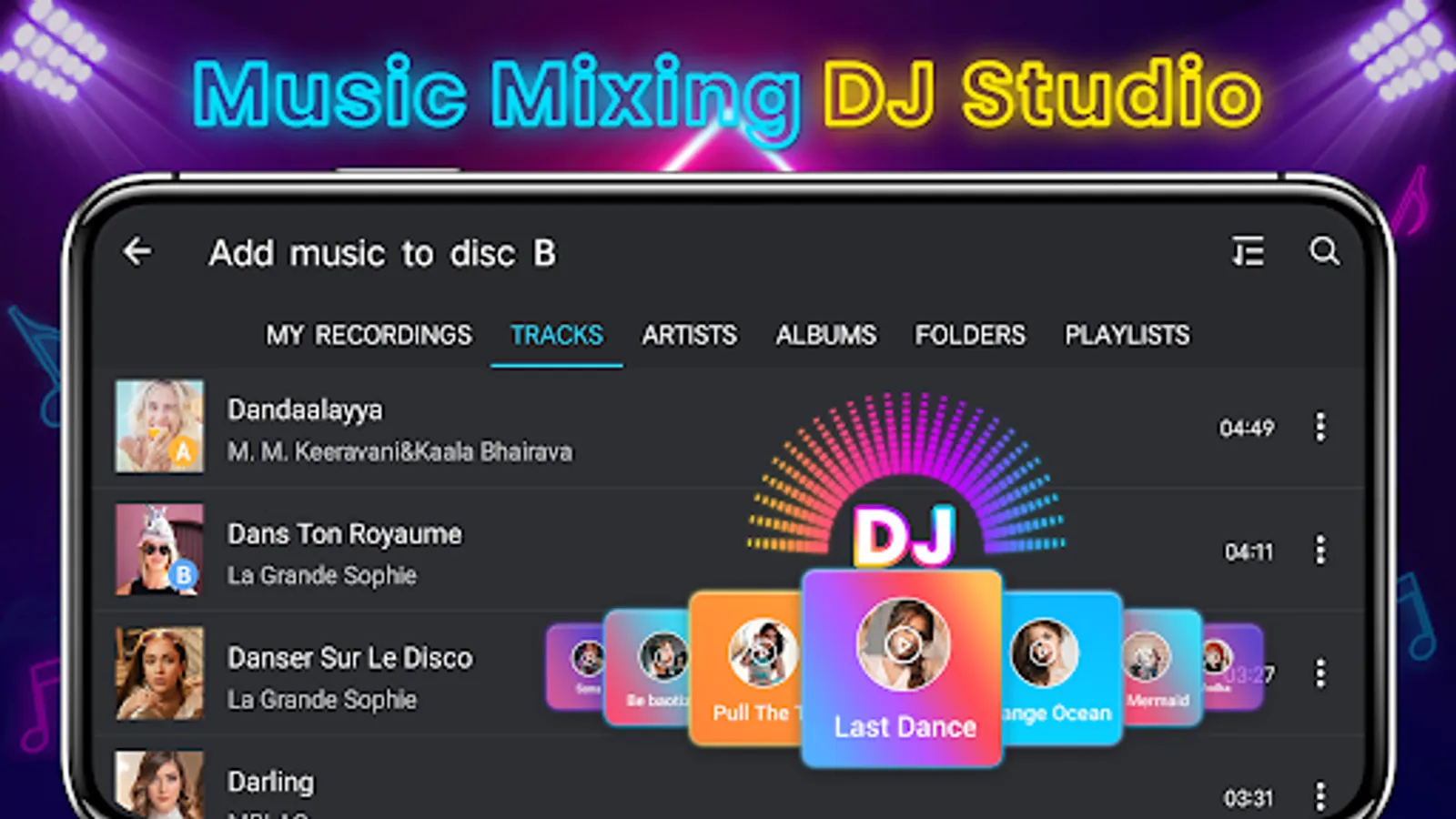 - Easily import and mix your music library by tracks, artist, album, folders and playlist