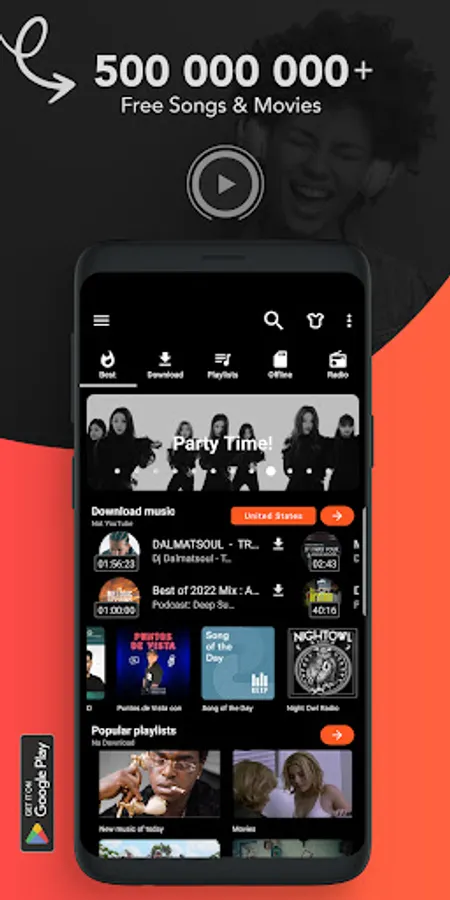 MP3 Downloader Mogo Player - the ultimate free music player and downloader for your Android device. With over 500 million tracks to choose from in MP3 and all other formats, you'll never run out of music to enjoy. Our app offers superb sound quality and a convenient background playback feature that allows you to keep listening to your music while using other apps. Whether you're looking for the latest hits or classic tracks, Mogo Player has it all.