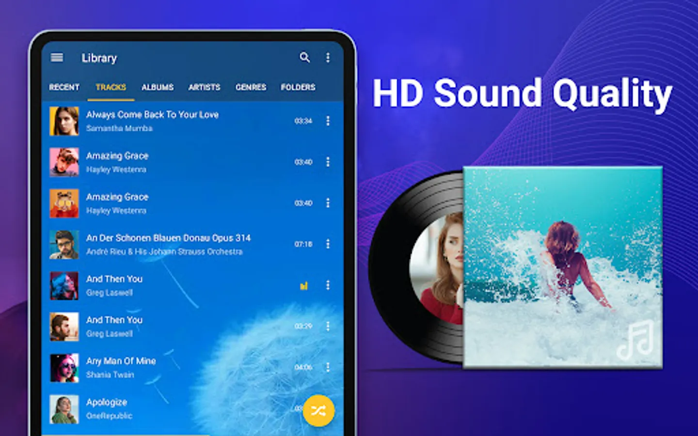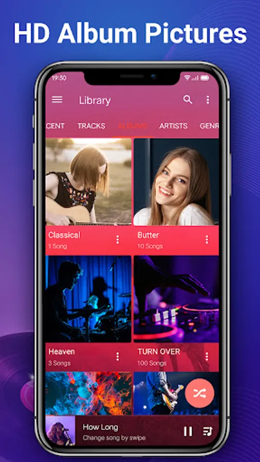 Music Player can easily browse and play music songs by genres , albums , artists , songs, folder and custom playlist.