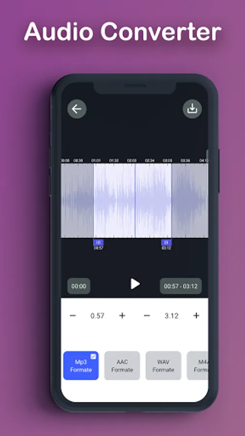 ➜ Audio Converter: Easily convert any audio files from one format to another format. Support many different file formats such as mp3, aac, Wav, WMA, mp4, m4a, and asf formate.