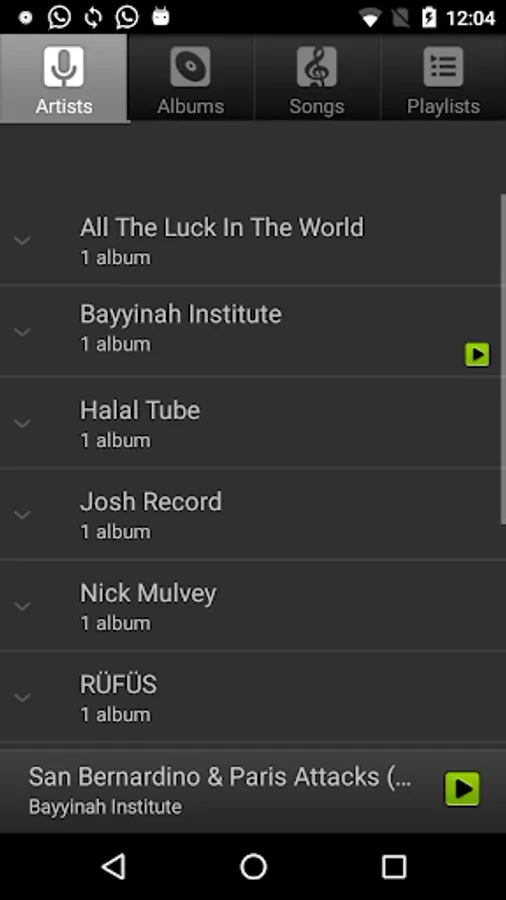 This is a native android player, shows your playlists, artists, albums and music.