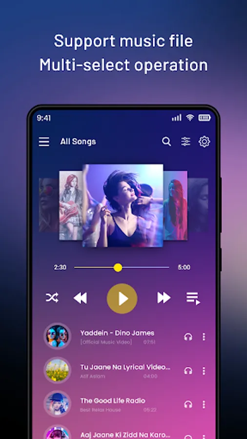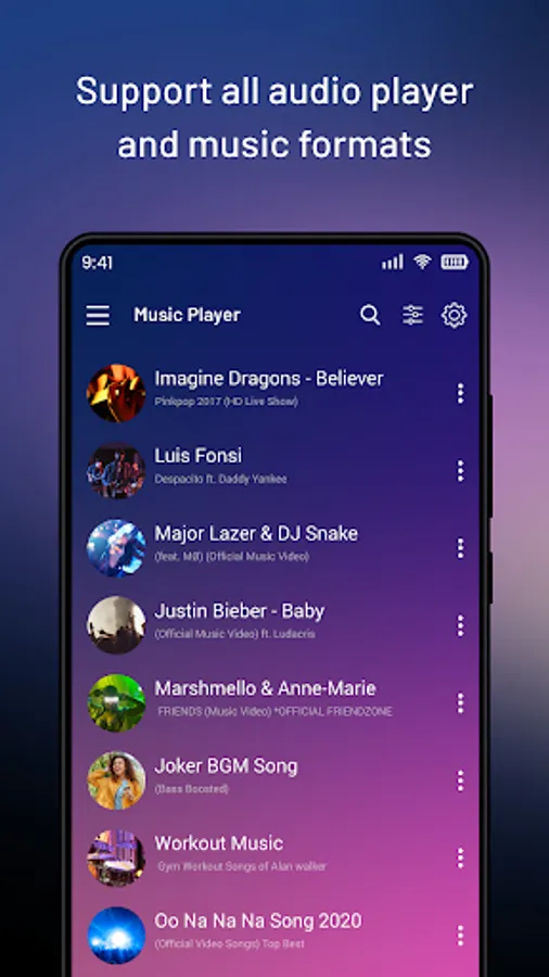 samsung galaxy S21 Plus music player is optimized for all Android phone. It provides a ss S9 player music with two modes, powerful music player for Android with best user interface.