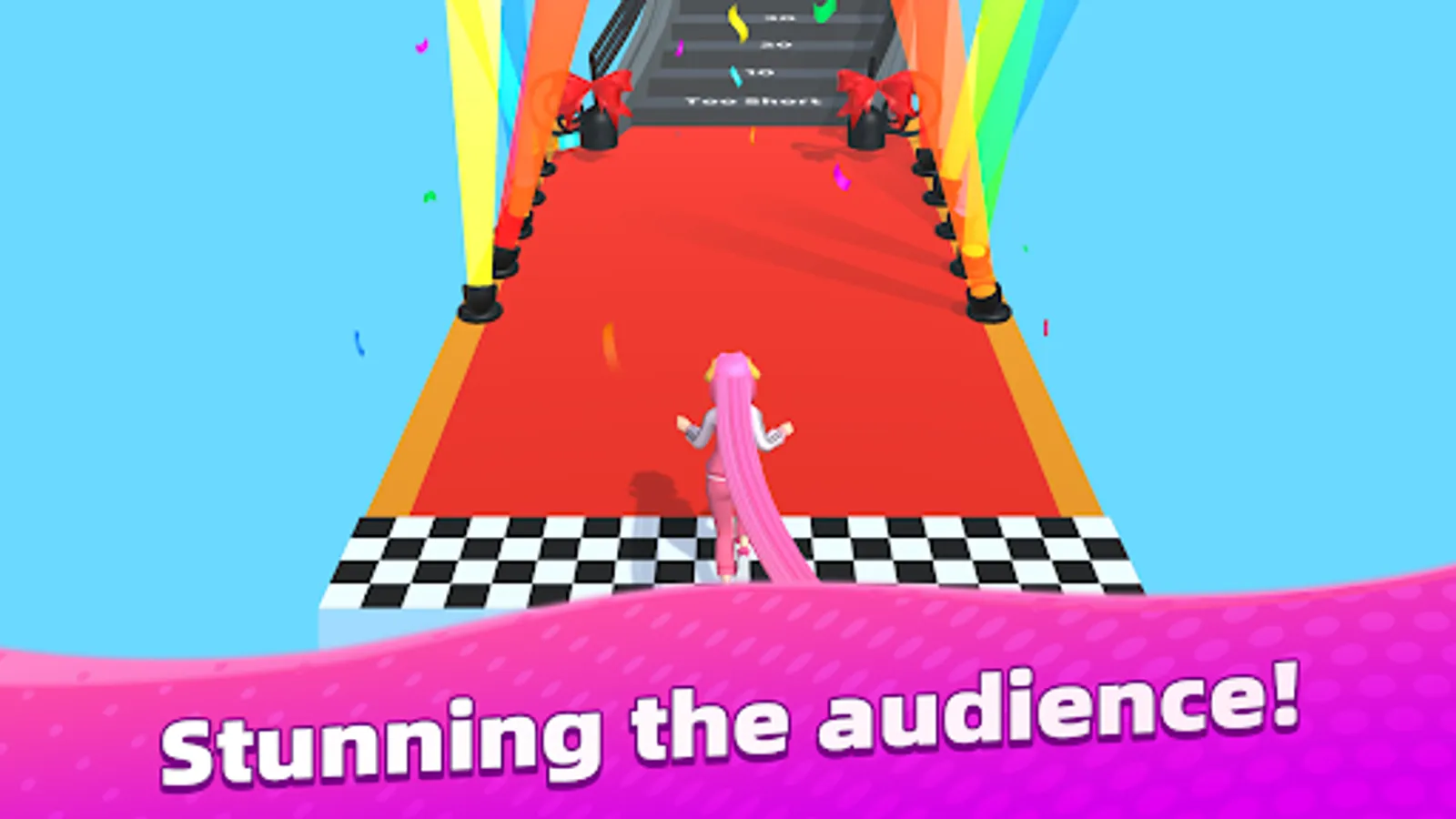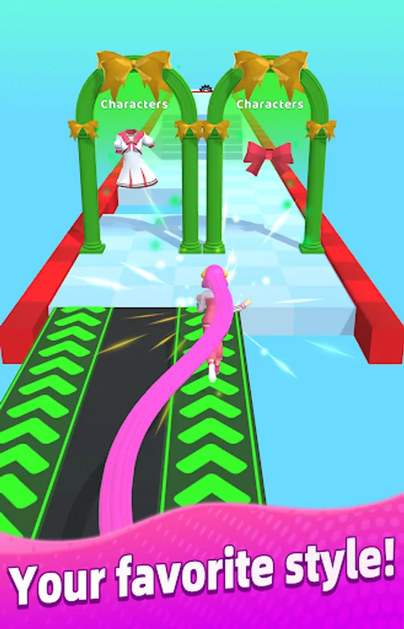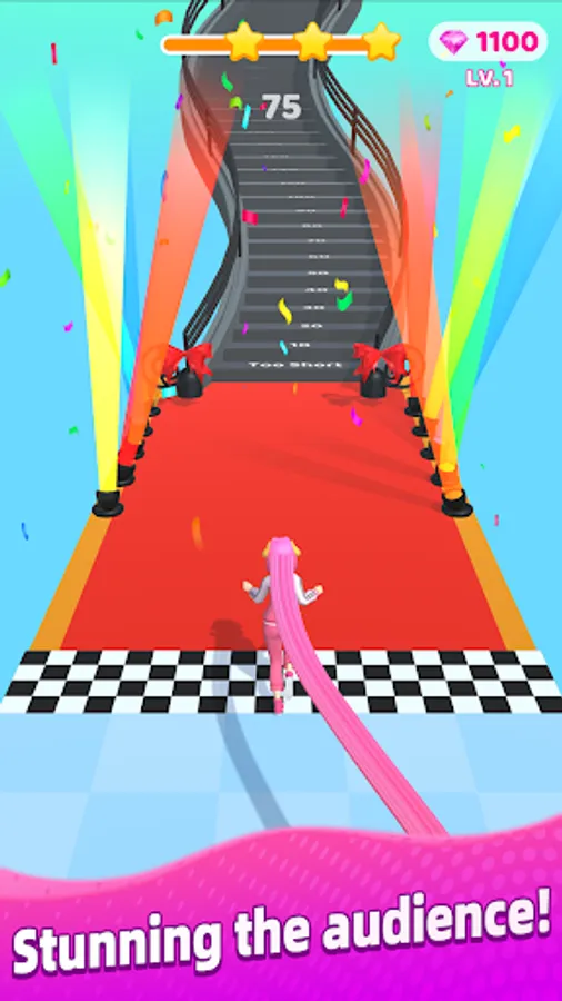 Become the tangled princess, avoid obstacles and finish the fashion runway. Get super long majestic hair to the rhythm of music.