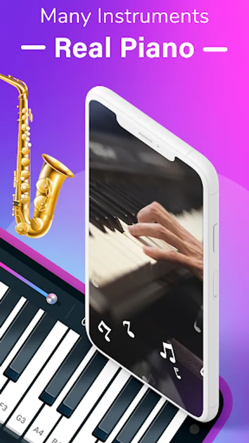 Real Piano Play Keyboard is an electric keyboard simulator app with virtual musical instruments to help you learn chords and music notes for free and learn how to play the piano keys in many interesting ways.
