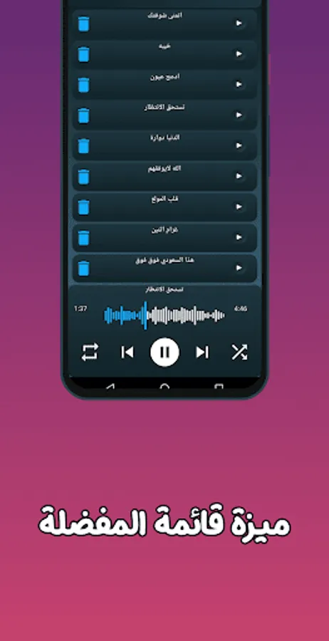 The application contains all chelated 2023 - 2022 on the best and most beautiful chelated songs that are most listened to exclusively in our application. Chelated by many artists and vocalists in the field of chelations, such as chelated Gharib Al Mukhlas and also chelated by the artist Abdullah Al Mukhtas, the application also contains chelated Badr Al Ezzi, and you will also find chelated Fahd Bin Fasla, in addition to Majid Al-Raslani and Badr Al-Ezzi, and you will also find Muhammad Bin Ghurman in the application