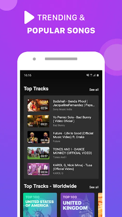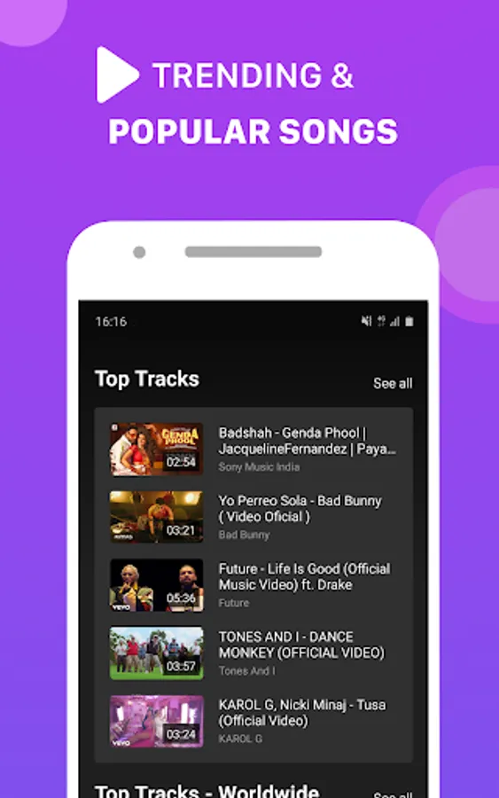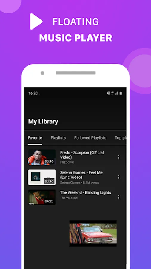 - Free music have floating player , watching videos to avoid interruption off music playback