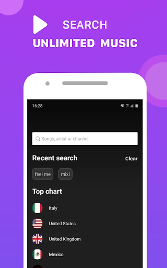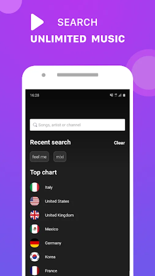 - Search among millions of ads-free YouTube music videos for free: smart search with suggestions