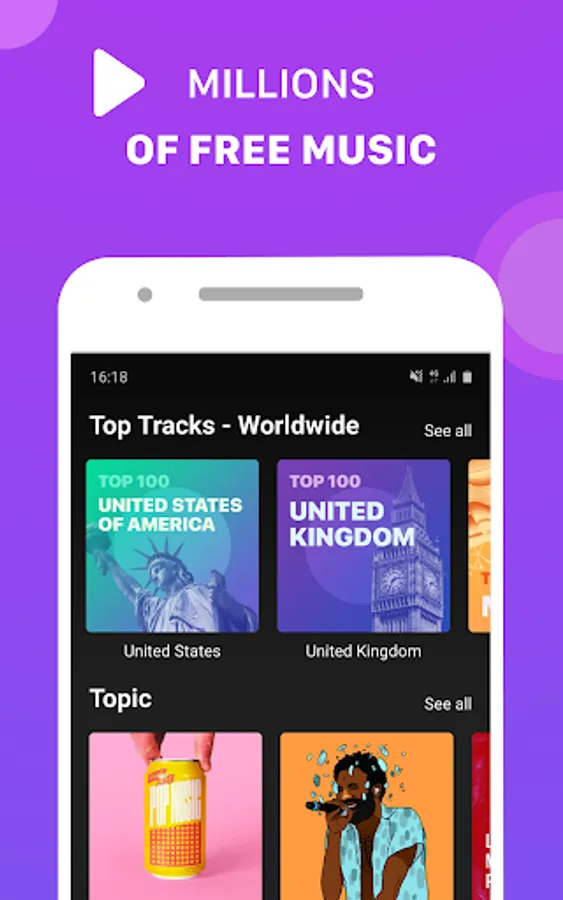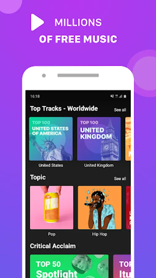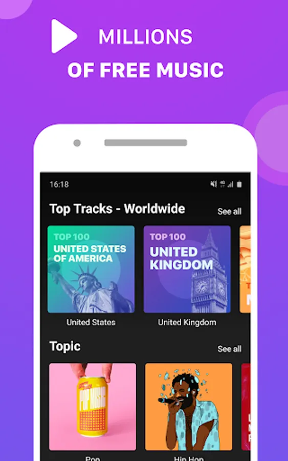 - Access 100 music genres: Electronic, Soul, Hip-Hop, Reggae, Rhythm & blues, Disco, Jazz and more